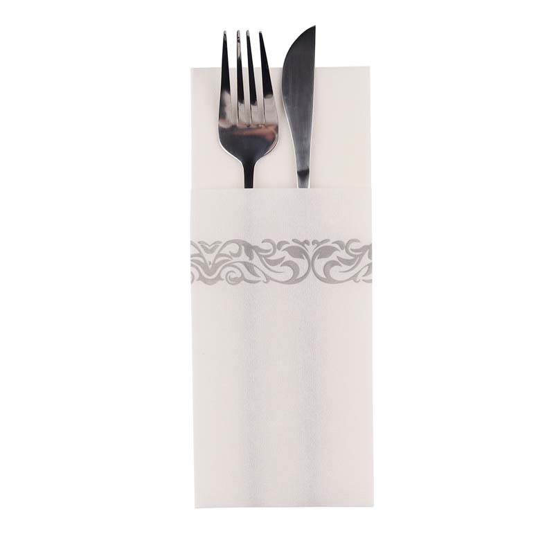 | استقبال الزفاف | يضيف طي الجيب الأناقة أثناء حمل أدوات المائدة بشكل أنيق |
